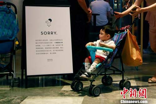 圖為店門口每人限購三杯的告示。 王遠 攝