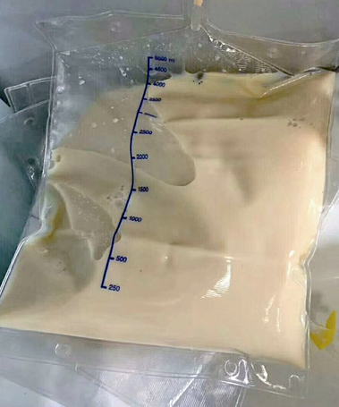 當晚,2000毫升的血漿被送到ICU。對高脂血癥引起的急性胰腺炎,最有效的治療方法就是將患者血液里的油脂給置換出來。正常的血漿顏色為淡黃色,但從小萍體內置換出來的2000毫升血漿卻是奶白色,就像凍住的豬油一樣。“這樣的血在體內,就會堵住血管。”醫生說。