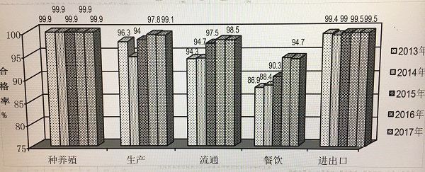 圖說:2013-2017年上海市各環(huán)節(jié)食品監(jiān)督抽檢合格率情況 市食藥監(jiān)供圖