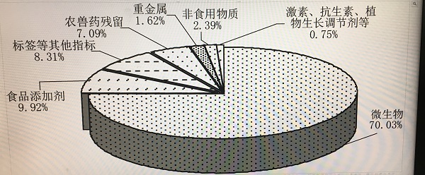 圖說:2017年上海市食品不合格主要因素構(gòu)成比 市食藥監(jiān)供圖