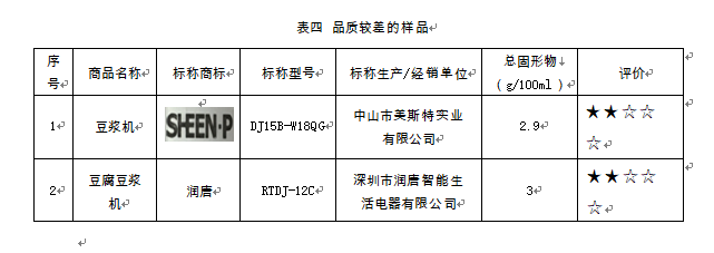 在制漿能力檢測中,標稱由江蘇松橋電器有限公司生產(標稱商標:松橋電器;標稱型號:MS-PS0801)的1件樣品,檢測結果為強陽性,即未煮熟。