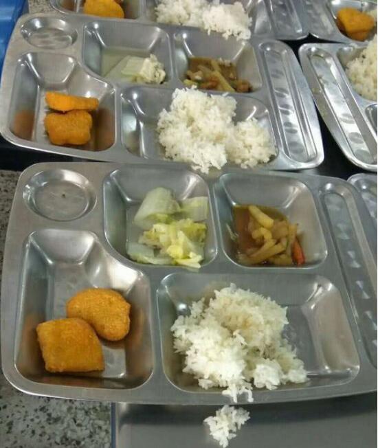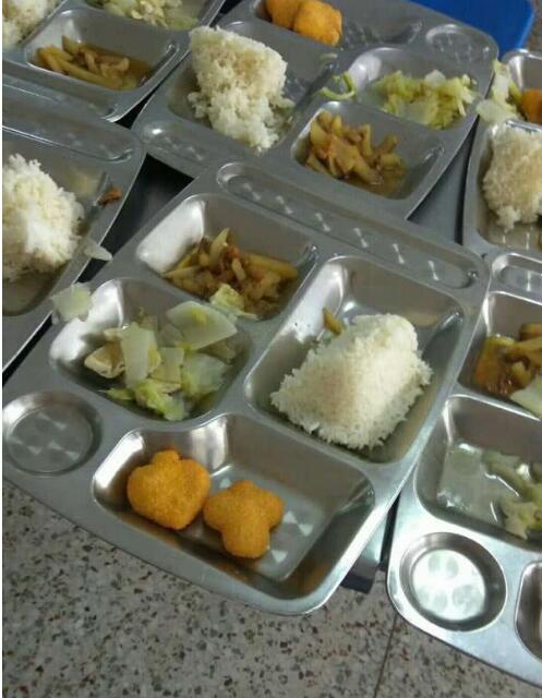 從 10 月 8 日下午開始,照片陸續出現在微信群和其他自媒體上,并傳播開來。記者從照片上可見,在不銹鋼的餐盤上,除了少量米飯,還有三個菜,其中能看到土豆、白菜和兩個黃色的油炸小餅,與普通成人的飯量相比,份量均顯得明顯不足。